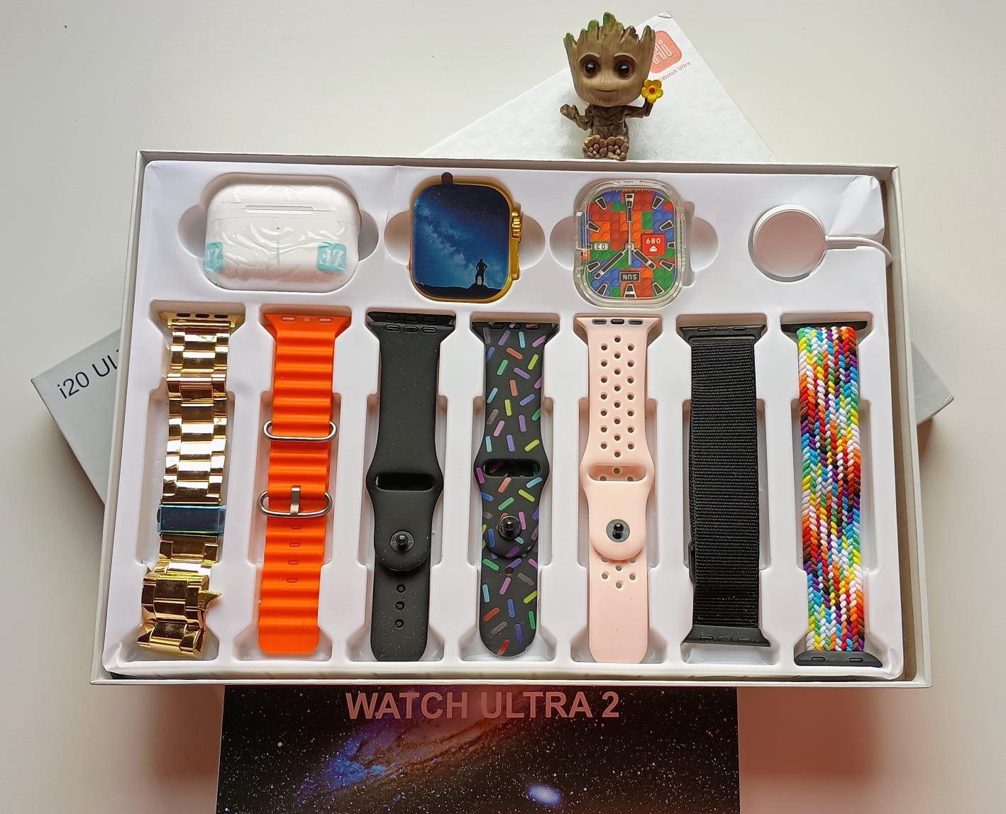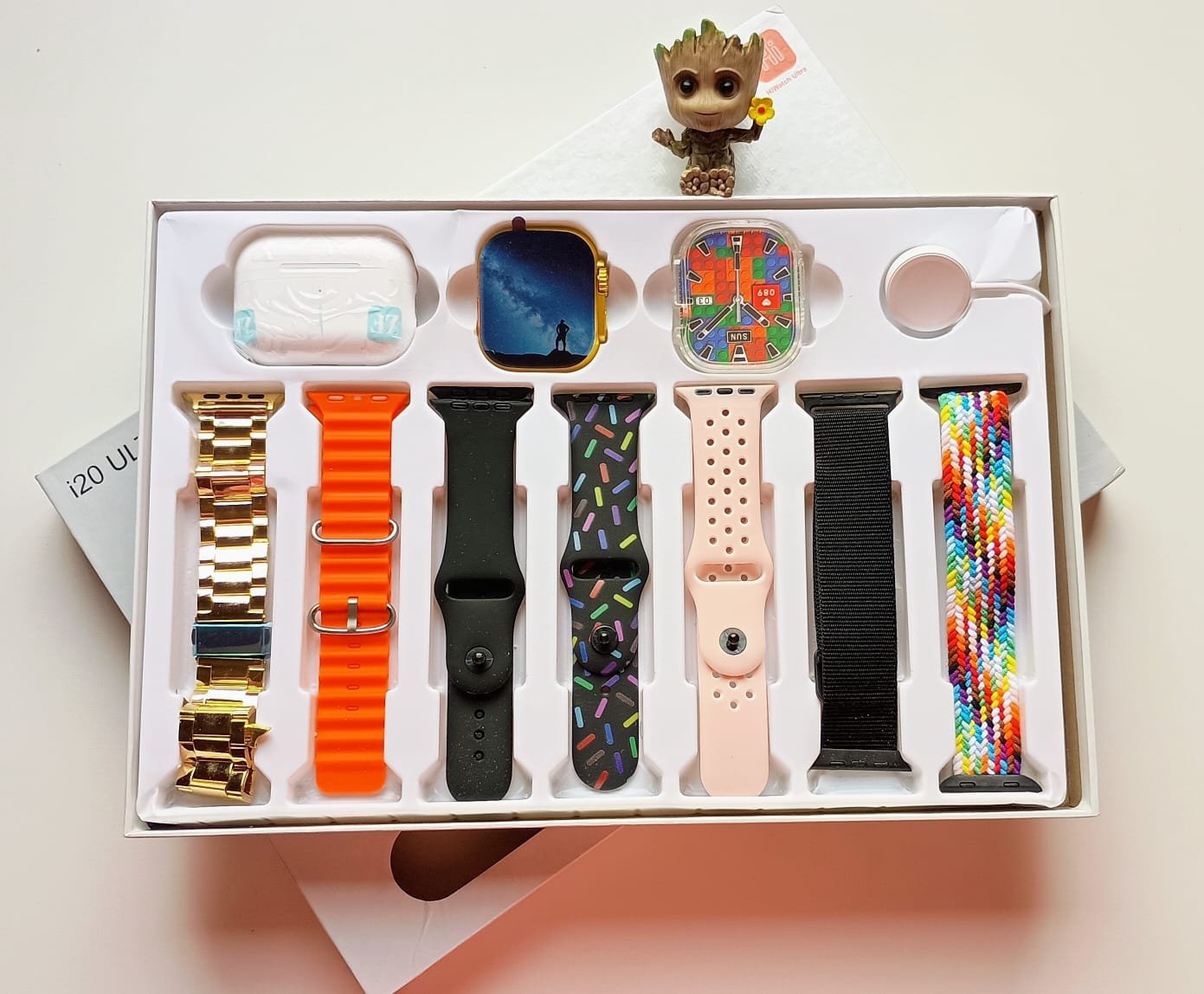 O I20 Ultra Max Suit Smartwatch é um relógio inteligente de alta performance, projetado para quem busca funcionalidades avançadas com um design moderno e elegante. Ele conta com tela sensível ao toque, múltiplos modos esportivos, monitoramento de saúde (frequência cardíaca, pressão arterial e oxigenação), além de notificações inteligentes para chamadas, mensagens e redes sociais. Também oferece resistência à água e bateria de longa duração, sendo ideal para acompanhar o dia a dia, seja em atividades físicas ou no trabalho, proporcionando conveniência e estilo.